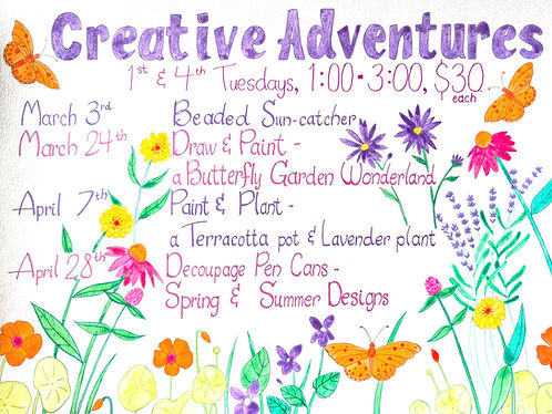 Join us for a community creative experience where we will celebrate things we love and discover some NEW ways to keep our lives interesting and fun!